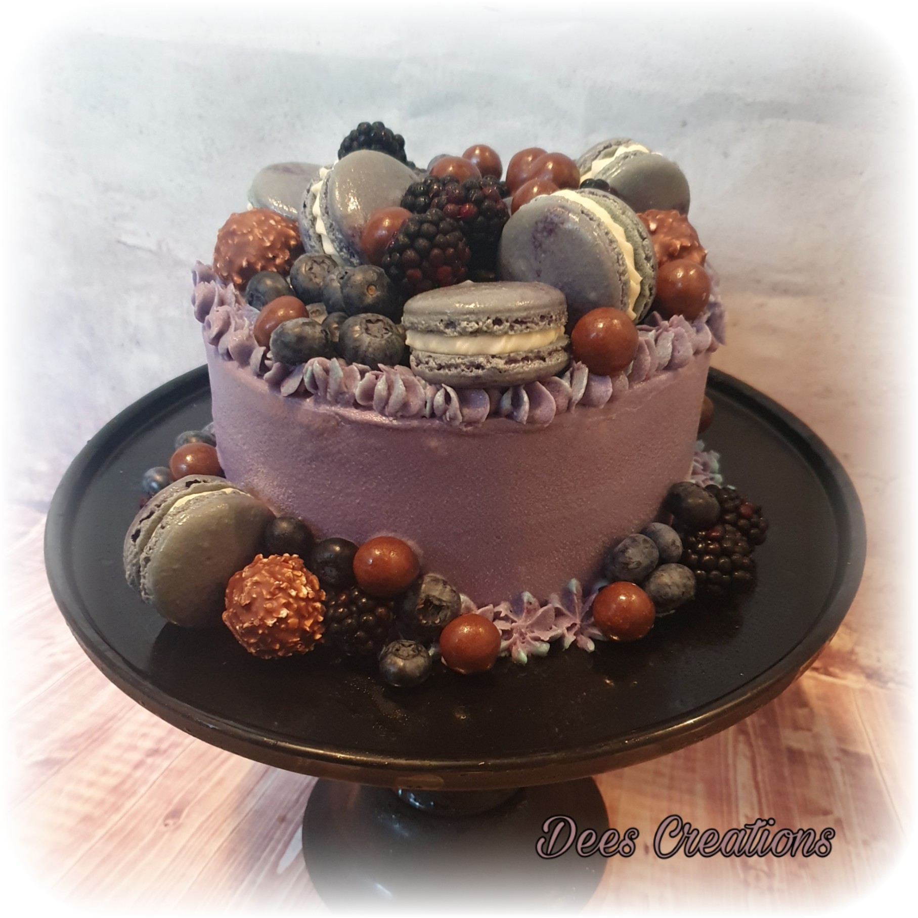 Taart 12 a 16 personen, 12x cupcakes, 9x donuts, 12x macarons, €135,- incl. decoratie (Eventueel tegen een meerprijs: 3D boetseerwerk, speciale vulling, bladgoud enz.)